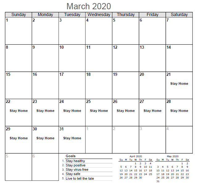 March 2020 Virus Survival Planner